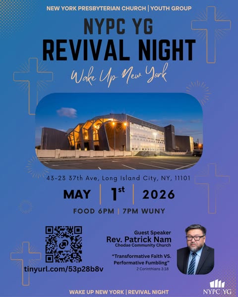 - NYPC Revival Night – May 1Register for the Revival Night at New York Presbyterian Church!