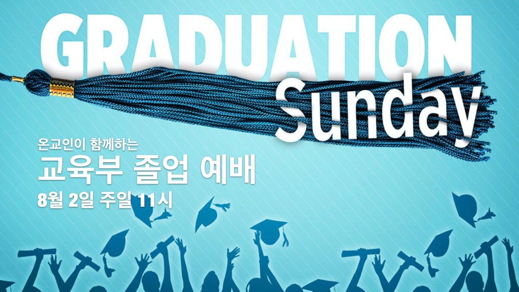 - 많은 아쉬움을 안고 이번에 졸업한 학생들을 위해 교육부 졸업 예배를 8월 2일 11시 대예배때 연합으로 가질 예정입니다. 예배는 인터넷으로 진행되며 졸업하는 학생들의 이름이 호명 될 예정입니다.